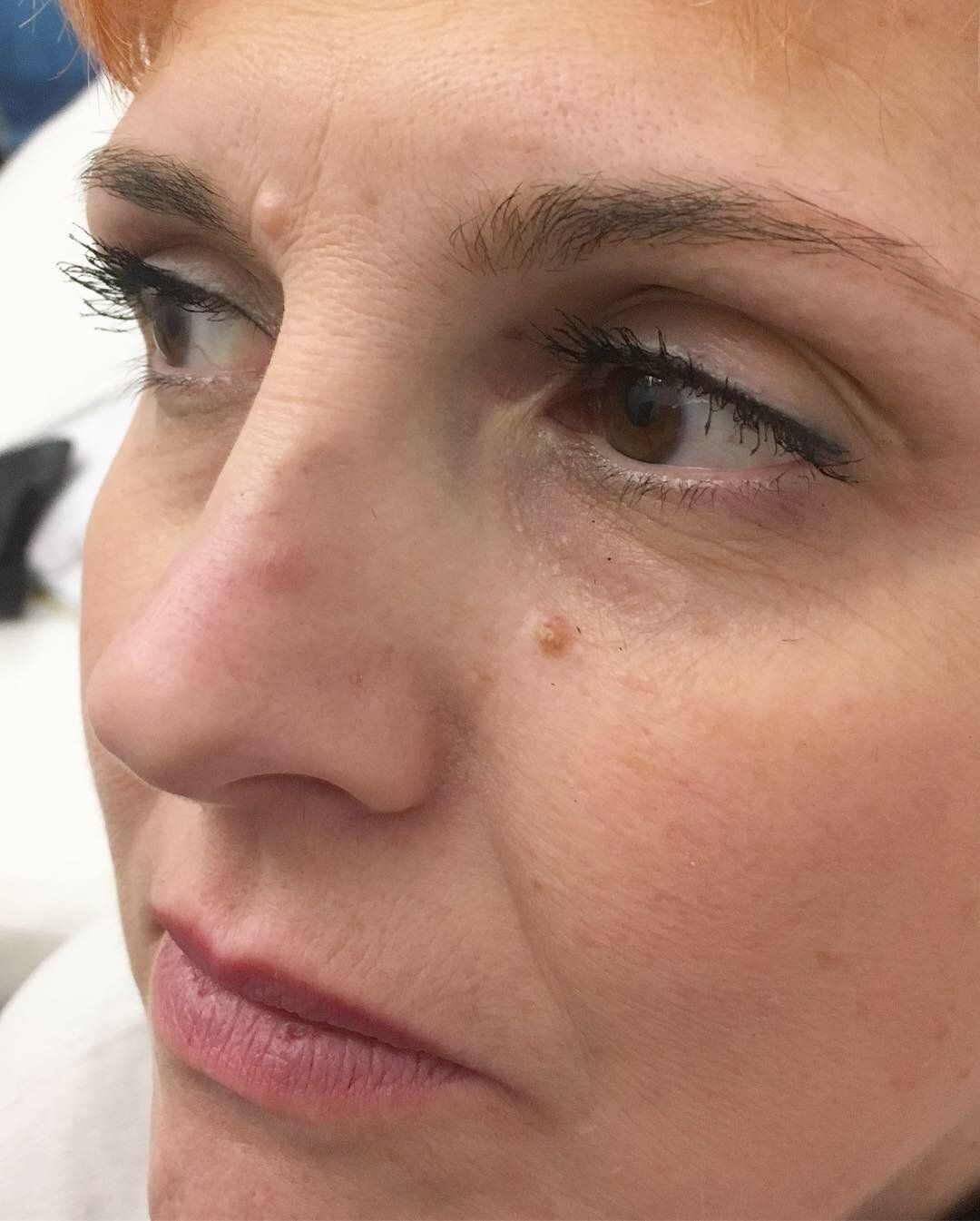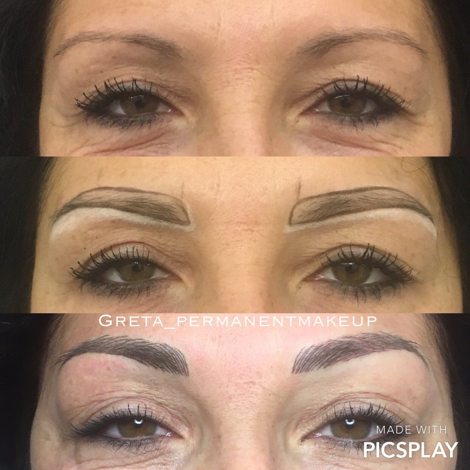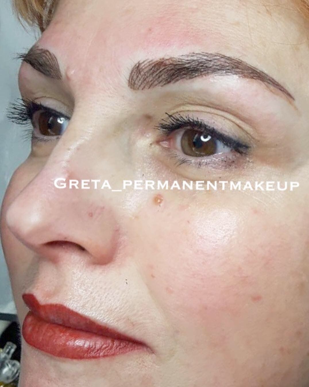 Semipermanente per sopracciglia, eyeliner, contorno labbra sfumato e full lips.